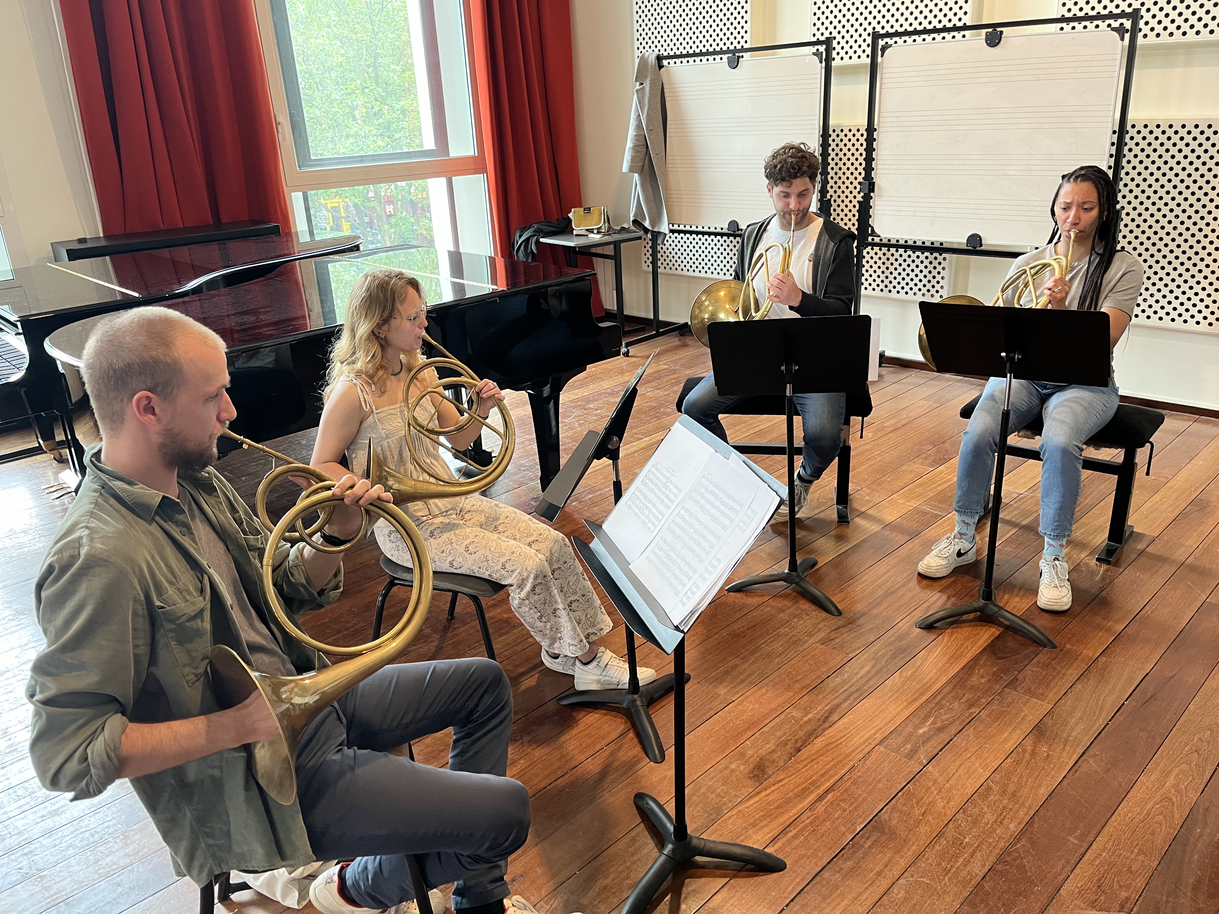 Je crois profondément à la polyvalence comme atout pour le musicien d’aujourd’hui. Dans le cas du cor baroque, par exemple, cela signifie maîtriser plusieurs approches (jeu avec ou sans la technique de main ou des trous de correction). Mais il me semble tout aussi important d’encourager les étudiants à privilégier l’approche historique, autant que le contexte et le répertoire le permettent. La compréhension du discours musical — nourrie par la rhétorique et l’étude des pratiques expressives propres à chaque période (portamento, tempo rubato, vibrato, accents agogiques, etc.) — est au cœur de mon enseignement.